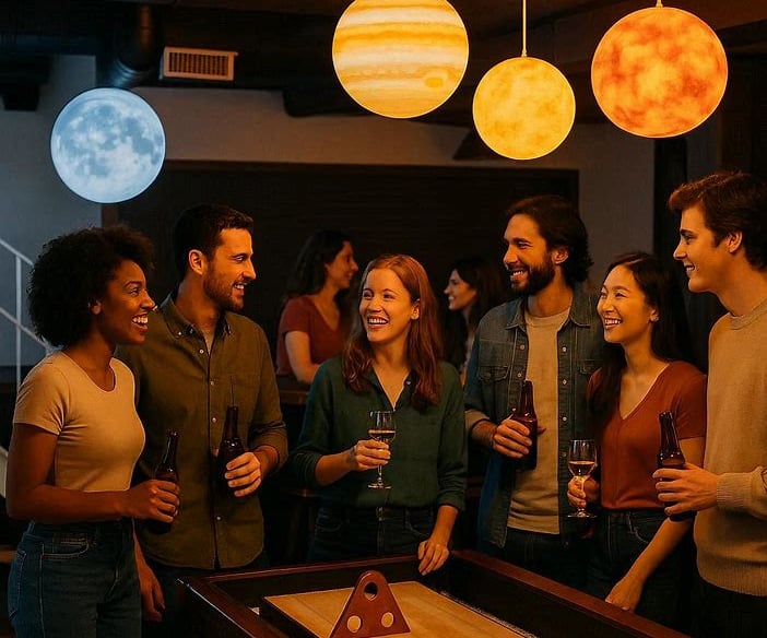 Enjoy interactive games and delicious light meals here