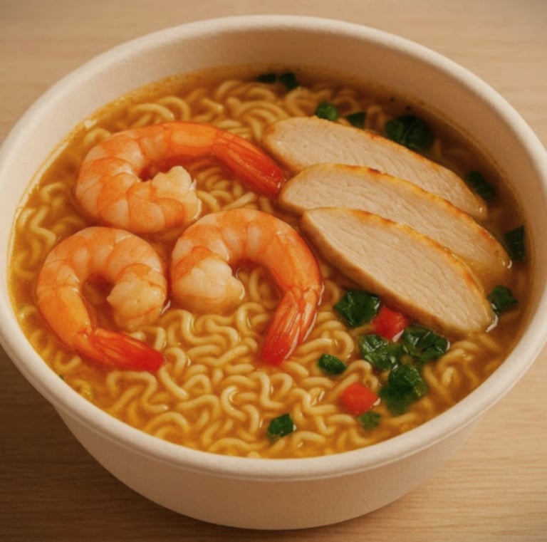 Enjoy self-service instant noodles and delicious drinks
