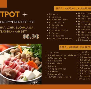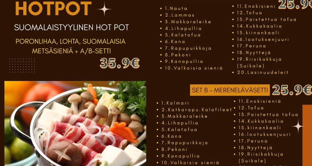 Naudanliha- ja lammasateria, äyriäisateria, suomalainen erikoisruoka-ateria